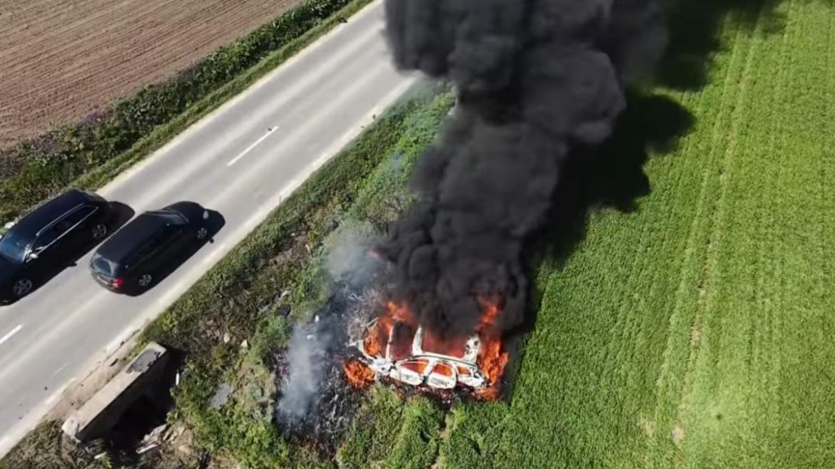 Un incident șocant zguduie comunitatea din Iași, după ce un autoturism electric, răsturnându-se pe drumul județean DJ 208, a luat foc și a ars complet. Totul a început în localitatea Luncași, comuna Hălăucești, unde șoferul a pierdut controlul volanului și a lovit violent un cap de pod. Impactul brutal a transformat mașina într-un pericol ambulant, incendiul declanșându-se rapid și mistuind vehiculul într-o vâlvătaie apocaliptică.